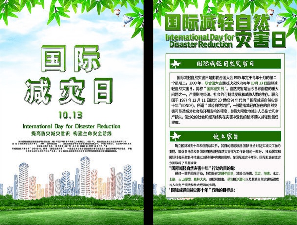 今年10月13日是我国第32个“国际减灾日”。自然灾害是当今世界面临的重大问题之一,严重影响经济、社会的可持续发展和威胁人类的生存。今年的宣传主题是“构建灾害风险适应性和抗灾力”。