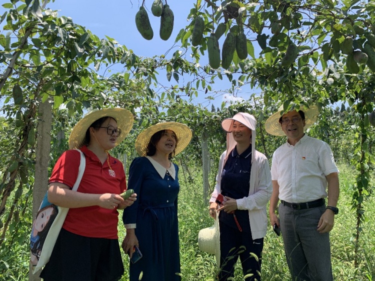 王彩云、王媛媛分别系华中农业大学园林学学院教授、讲师,当日专家团与20位本地中药材企业、专业合作社代表就当地中药材和花卉苗木种植等产业推进情况展开了座谈交流,专家团详细了解当地药材和花卉苗木种植和销售情况,并就代表们提出的花卉苗木病害、土壤改良、最佳种收时间等问题进行了答疑释惑。会后,专家组一行顶烈日,冒酷暑实地查看了该村中药材种植基地、水果采摘园。后续专家组将采取线上、线下相结合的方式持续跟进当地药材和花卉苗木种植情况,确保专家志愿服务活动取得实效。