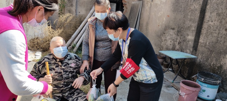 张兴凤、王昌芳、陆仁珍等都是包联点里的孤寡老人,封控期间物资采购不便,生活困难,党员干部在听到这个消息后,主动进行走访慰问,询问是否存在生活困难,送去肉和菜等物资,以实际行动向孤寡老人送去党的温暖,增强他们抗疫的信心。