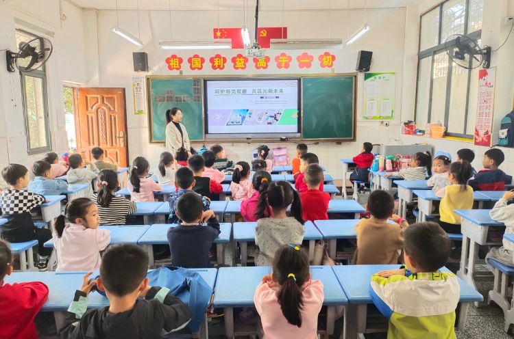 市康复医院眼科主治医生,从眼睛的组成结构、近视的表现、近视的原因以及爱眼护眼的方法等四个方面,为同学们深入浅出地讲解爱眼护眼知识。通过播放近视防控趣味图片、答题互动等形式,让同学们进一步加深了近视防控重要性的认知。此外,医务人员还向同学们发放《小学生防控近视手册》宣传资料,普及爱眼护眼的方法,督促同学们要保持正确的读写姿势,养成良好的用眼卫生习惯,同时还要认真做好眼保健操,保证充足的睡眠,不偏食,不挑食,保持营养均衡。