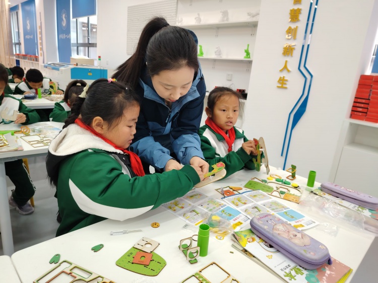 课堂上,科教老师通过展示各种显微镜下的植物、动物图片,向同学们提问,同学们都踊跃回答。一番理论讲解过后,科教老师向学生们发放了一套显微镜的DIY科普产品,同学们看到后兴奋不已,纷纷跃跃欲试,在科教老师及助教老师的指导下一步步将一部木制显微镜组装成功,将理论运用到实践中去,更加直观、深切地理解了显微镜的原理与运用。