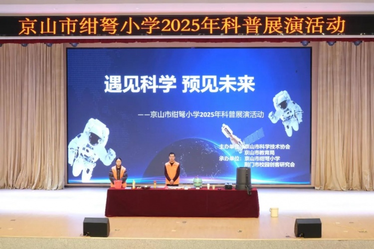2月21日,京山市绀弩小学礼堂座无虚席,气氛热烈,由京山市科协、京山市教育局主办,绀弩小学承办的“遇见科学,预见未来”科普展演活动在这里圆满举行。该活动旨在通过一系列精彩纷呈的科学实验展演,激发学生科学兴趣,增强科学素养,培养科学精神。