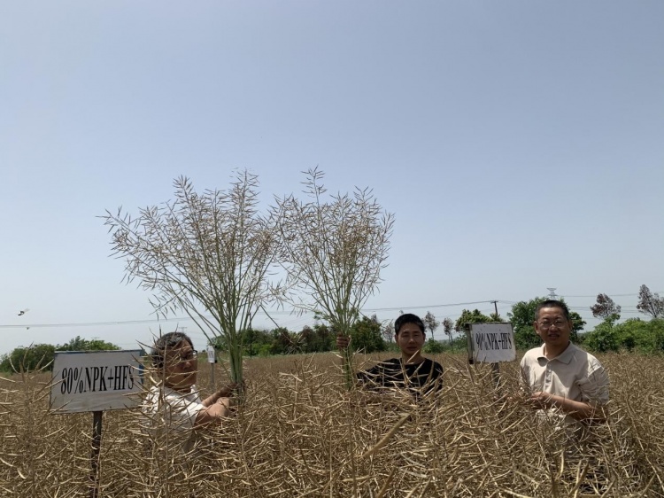 测产现场,专家团队采用科学取样方法,对不同试验区的油菜进行分区收割、称重和数据分析。初步结果显示,施用黄腐酸的油菜田块在抗逆性、角果饱满度和单产方面均优于常规种植区。王秀斌研究员表示:“黄腐酸能有效改善土壤结构,促进作物根系发育,提高养分利用率,在应对极端天气时表现出更强的稳定性。”这一发现为油菜高产稳产提供了新的技术支撑。