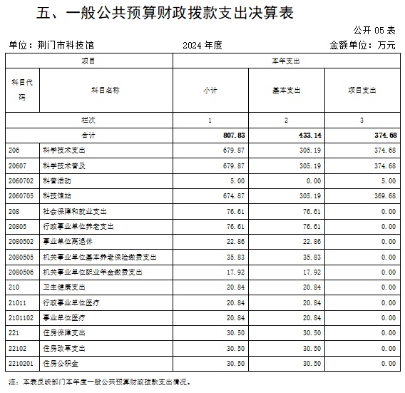 2024年度一般公共预算财政拨款支出年初预算为938.49万元,支出决算为807.83万元,完成年初预算的86.1%。其中: